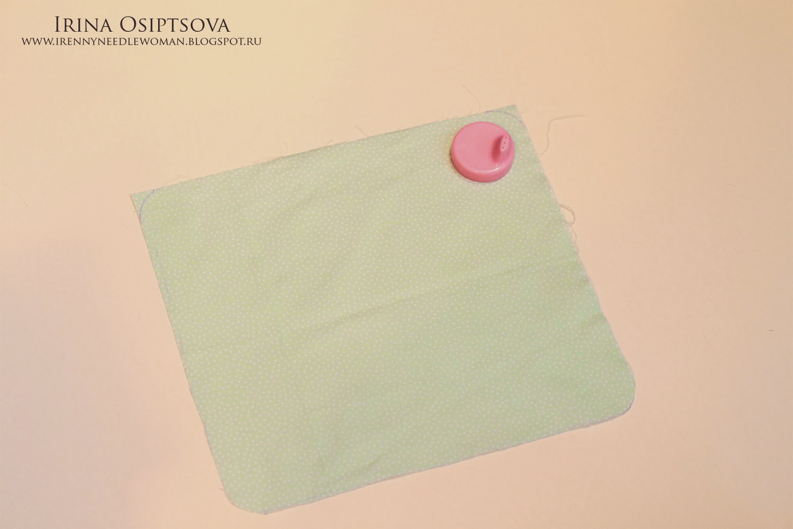 42. Выворачиваем, отутюживаем, делаем отстрочку по всему квадрату и пришиваем по центру верхней части нашей основной (внутренней) детали вот так: