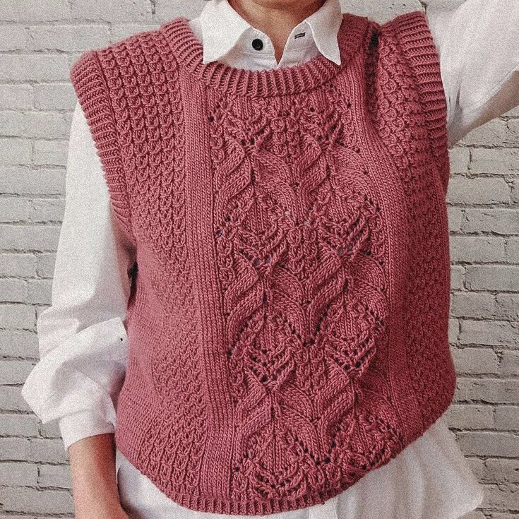 Симпатичная модель от Зульфии Рахимьяновой, которую можно носить как в качестве первого слоя, так и поверх рубашки, водолазки или футболки.