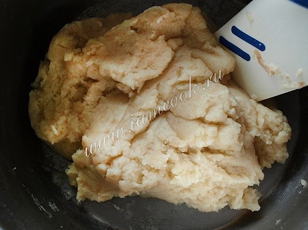 Тесто перекладываем в чашу комбайна, пусть слегка остынет, чтобы небыло горячим. Затем на медленной скорости постепенно начинаем вводить яйца по одному. 3 яйца пойдёт в тесто 100%, а дальше смотрим. Всё зависит от размеров яиц, качества муки. Я ввела 4-тое яйцо и этого оказалось достаточно. Тесто получилось глянцевое, очень хорошей консистенции.