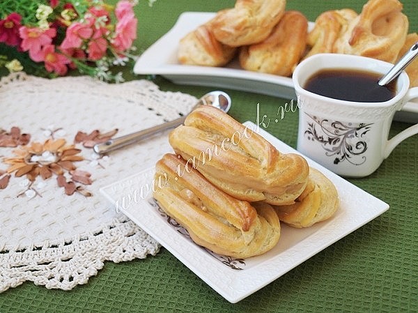 Эклеры в народе называют заварными пирожными так как они готовятся из заварного теста. Форма у эклеров продолговатая. Наполнителем для них могут быть масляные или заварные кремы. Я предлагаю наполнить их кремом из варёной сгущёнки. По этому рецепту эклеры получаются очень воздушными и сладкими-сладкими. Для настоящих сладкоежек!