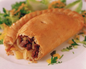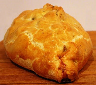 Вскипятить 3/4 стакана воды с маргарином и щепоткой соли. В кипящую воду всыпать муку с содой, отставить и растереть, чтобы не было комков. После чего подогреть на слабом огне, постоянно перемешивая. Когда тесто станет гладким, снять с огня. Добавить яйца, растирая их с тестом в однородную массу. Противень смазать жиром и посыпать мукой. Из заварного теста сформовать в муке валик диаметром 3 см и порезать его на куски длиной 3 см. Сформировать шарики, слегка их расплющить и уложить на противень на расстоянии 5 см друг от друга. Выпекать в горячей духовке в течение 15-20 минут. Во время выпекания духовку не открывать, чтобы тесто не осело. Когда заготовки подрумянятся, уменьшить огонь. Готовые заготовки оставить на несколько минут в открытой духовке, и только потом вынуть их. В охлажденном тесте вырезать острым ножом верхушки, наполнить отверстия горячей начинкой, прикрыть верхушками и прогреть в течение 5 минут в горячей духовке.