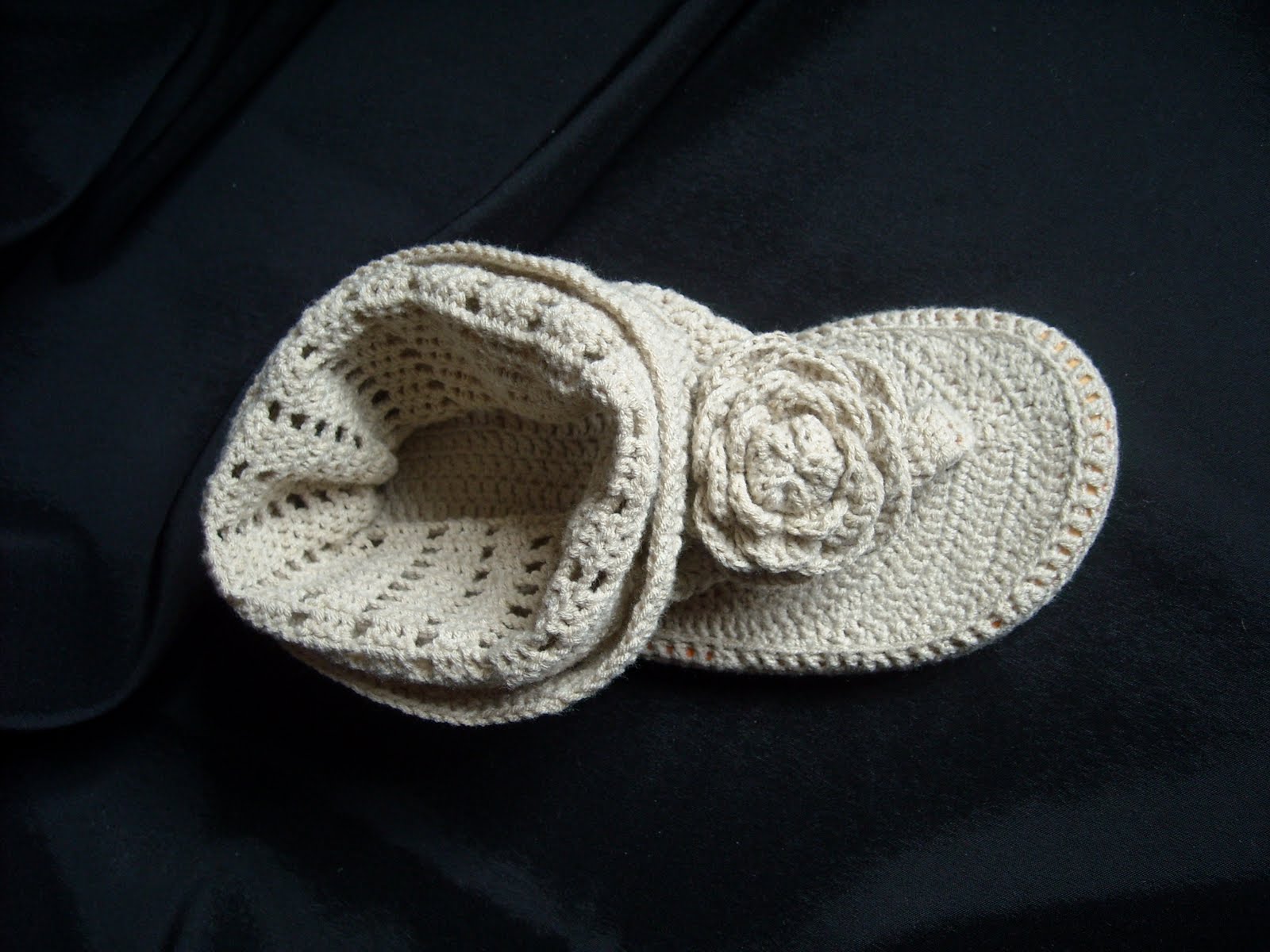 и еще один момент- поскольку тут пятка не жесткая, она будет сваливаться при ходьбе. я в районе верха пятки буквально на 5см протянула связаный шнурок и завязала (можно пришить резинку, а можно и пятку укрепить). помог замечательно
