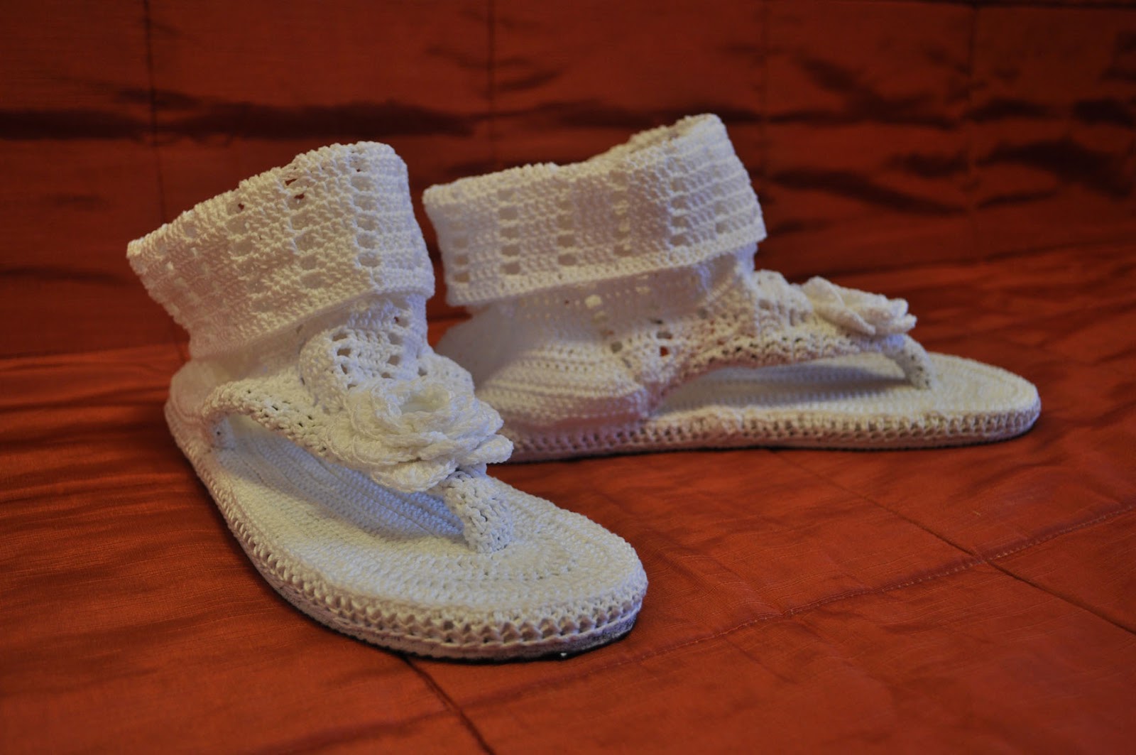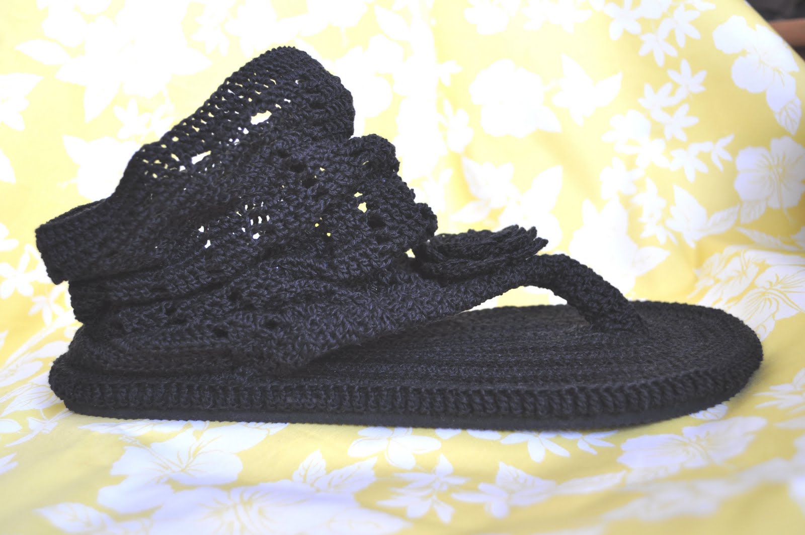Обычные шлепки-вьетнамки, надо только чтоб полоски были тонкие, ну, или подрезать до нужной ширины (в одном варианте я так и делала) чтоб при обвязке не толсто получилось.