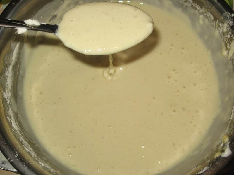 Получится тесто чуть гуще, чем на оладьи.