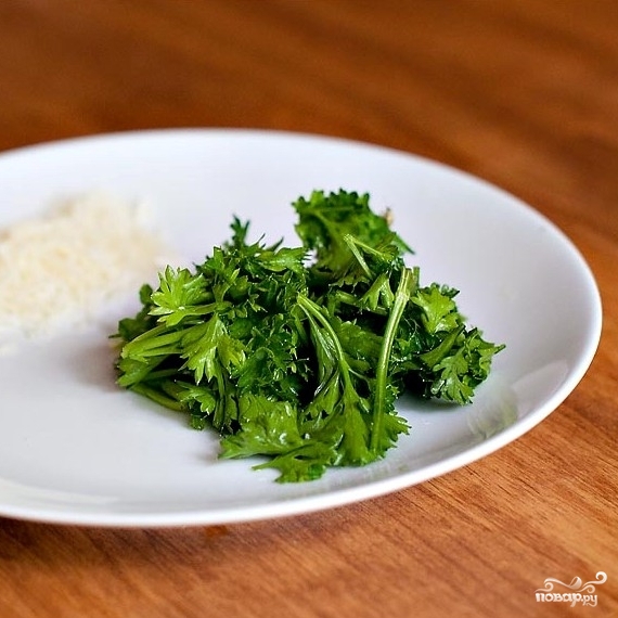 [показать] Пармезан натираем на самой мелкой терке, петрушку хорошенько промываем.