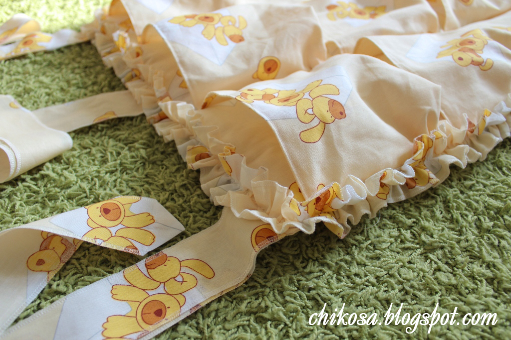 А вот еще один интересный вариант подзора с кармашками для кровати, уже более изысканный: