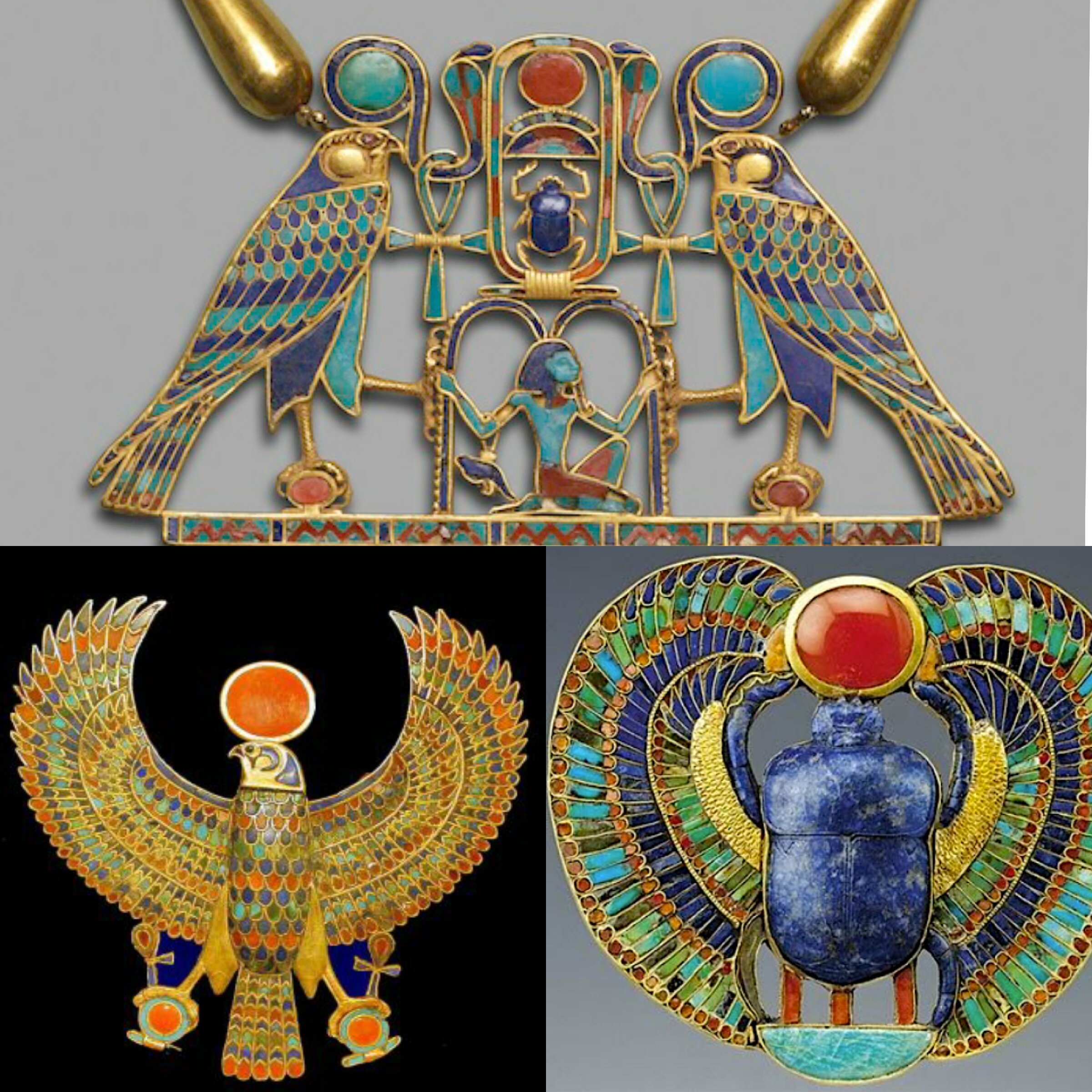 Жюль Вйез. Ожерелье в стиле "Египетского возрождения" из золота, цветных камней, фаянса и стеатита. 1870-е годы