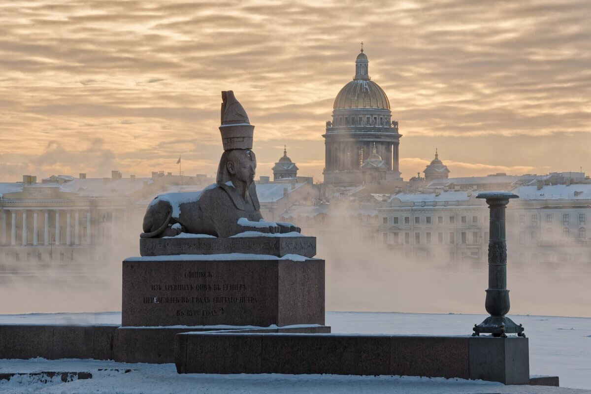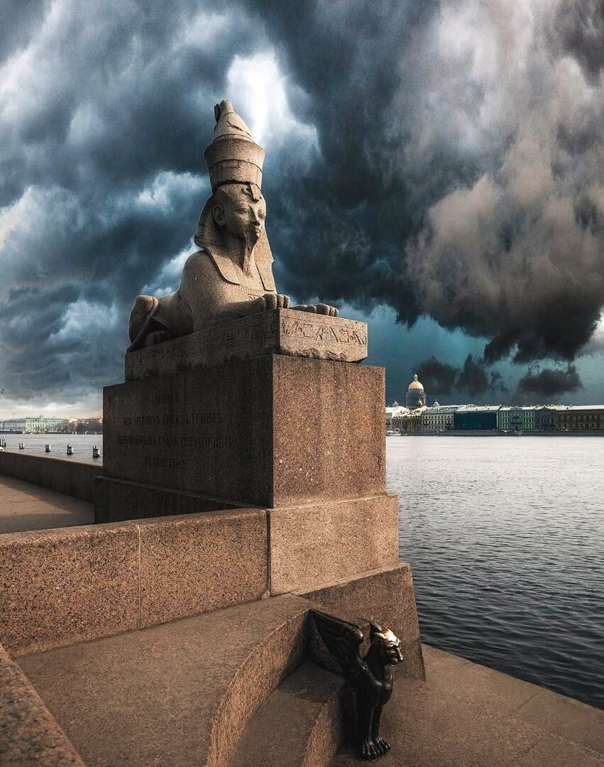 Древний сфинкс на Университетской набережной в Санкт-Петербурге