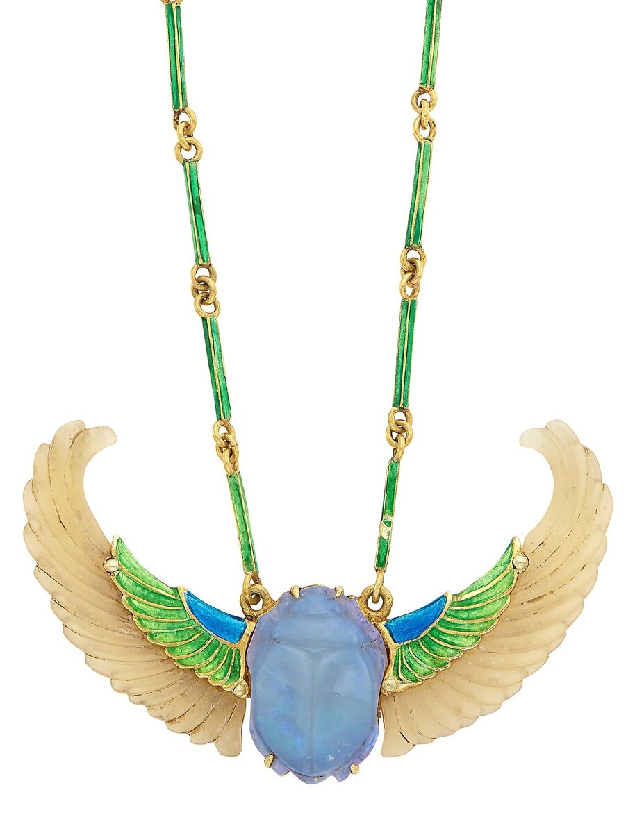 Рене Лалик. Ожерелье из золота, опала и эмали с подвеской-скарабеем в стиле "Египетского возрождения". 1900