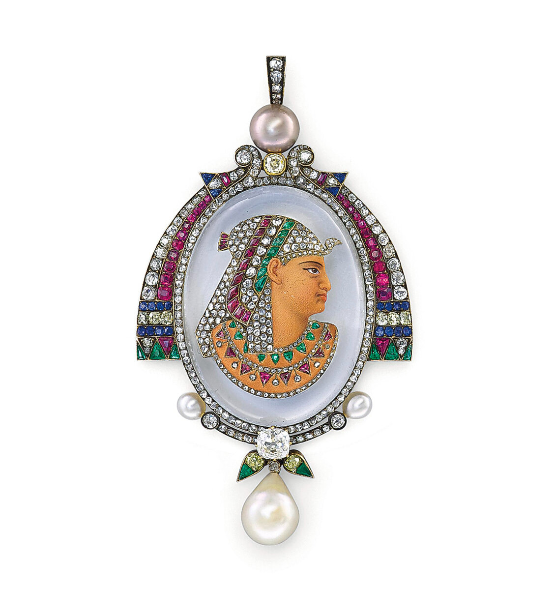 Гюстав Богран. Кулон с жемчугом и драгоценными камнями в стиле "Египетского возрождения". 1867