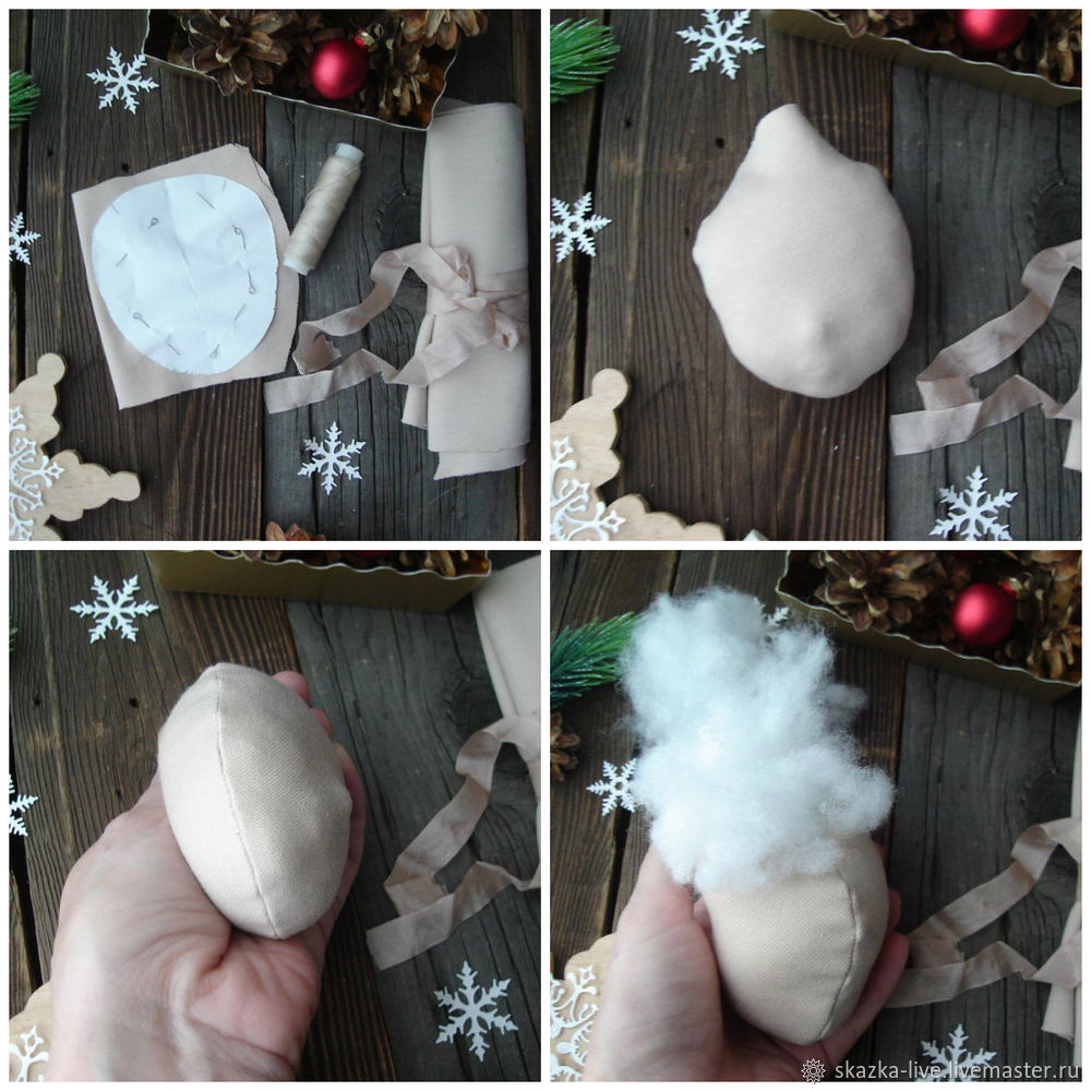 Для начала шьем заготовку головы, выворачиваем и набиваем ее достаточно плотно, чтобы она пружинила при надавливании.