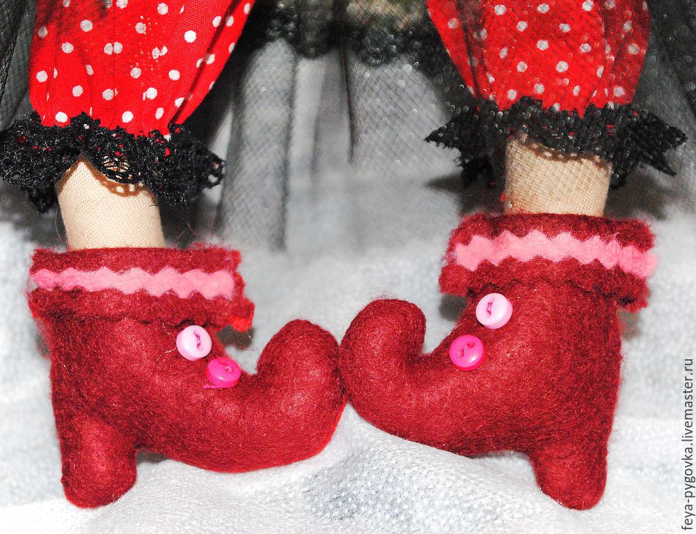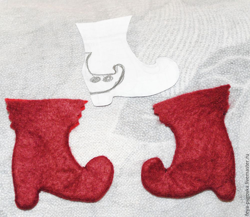Наша дамочка босиком бегать никак не может, поэтому пошьём ей ботиночки из фетра.