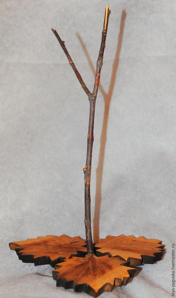 Делаем подставку (купила деревянную подставку под чайник, просверлила дырочку и вставила подходящую ветку).