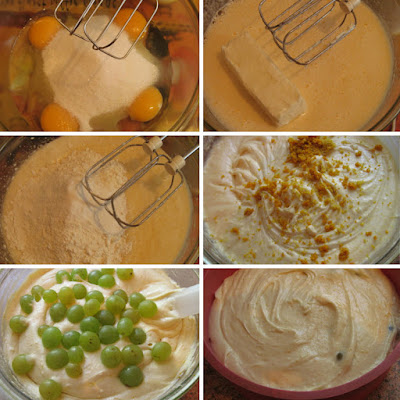 После чего, добавить 1/3 часть винограда, аккуратно перемешать и выложить тесто в смазанную форму для выпечки d=24-26 см.