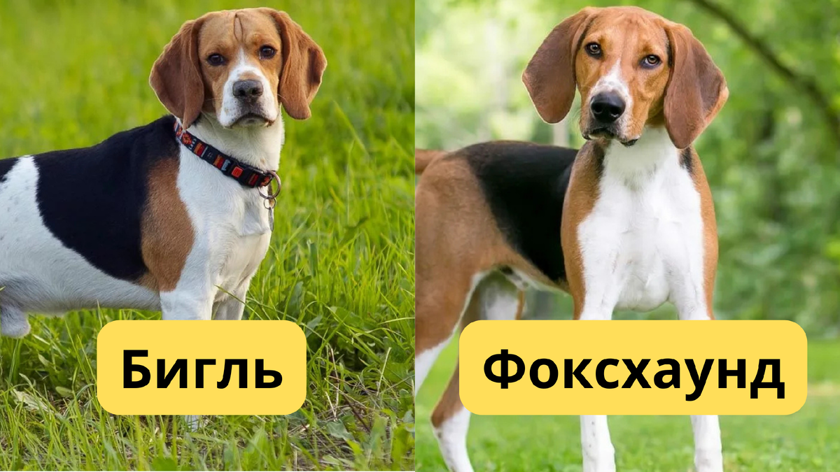 Обе породы — гончие с висячими ушами, звонким голосом и невероятным нюхом. Обе триколорные или двухцветные, обе обожают носиться по полям, вынюхивая следы. Но присмотритесь к пропорциям!