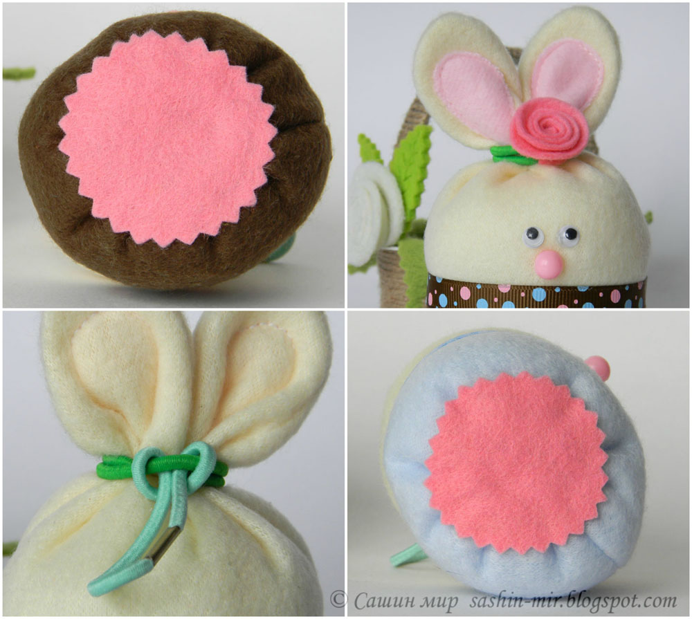 Немного деталек. Ушки завязала резиночками, украсив цветками.
