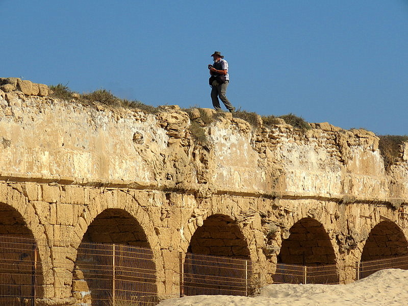 Первый, «высокий» акведук, - основной, питавший город водой. Водовод шел с севера от ручья Сабарин в холмах за горой Кармель. Проточная вода поставлялась в город, преодолевая путь в 10 километров. Акведук продолжал выполнять свое предназначение на протяжении 1200 лет.