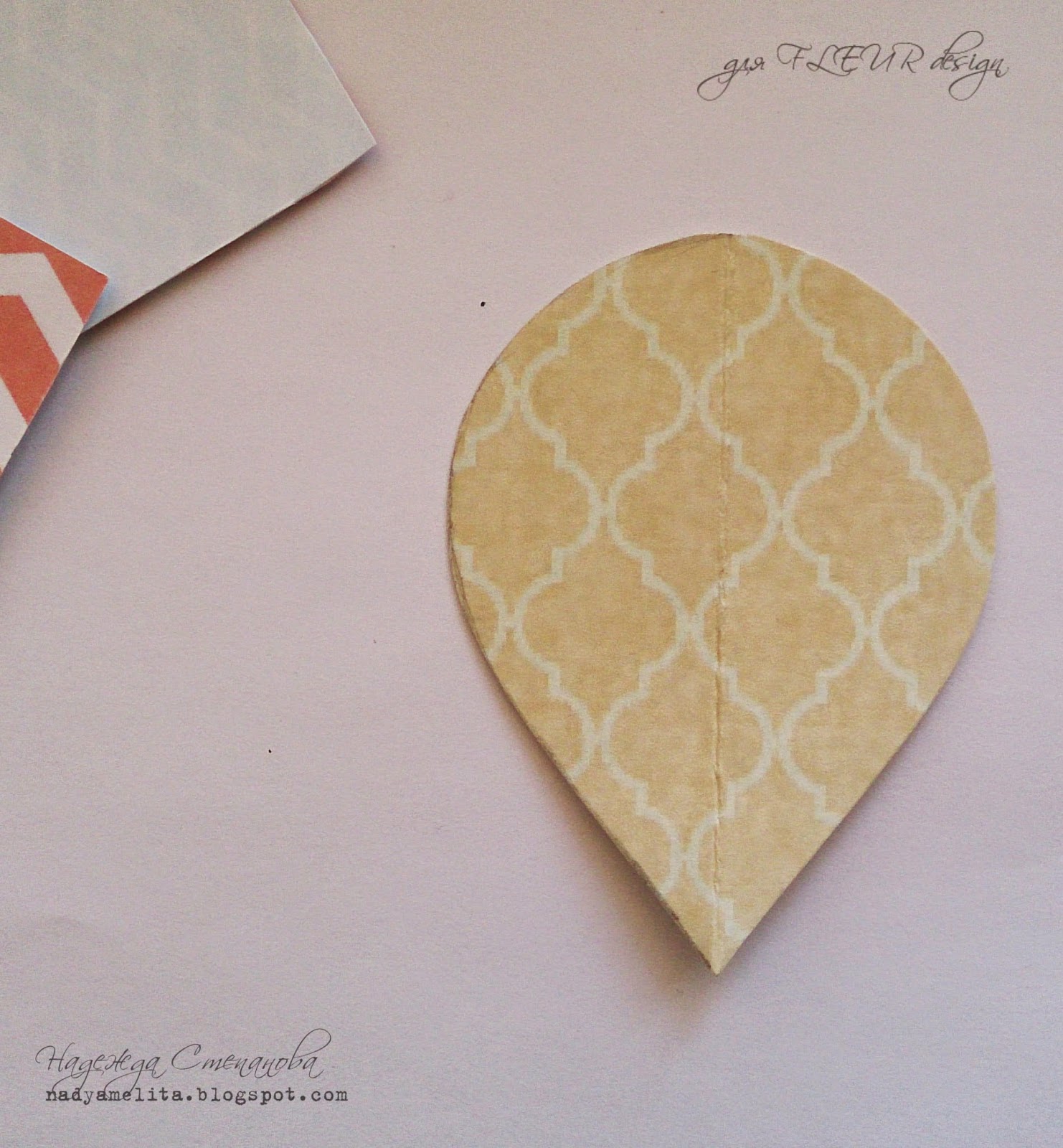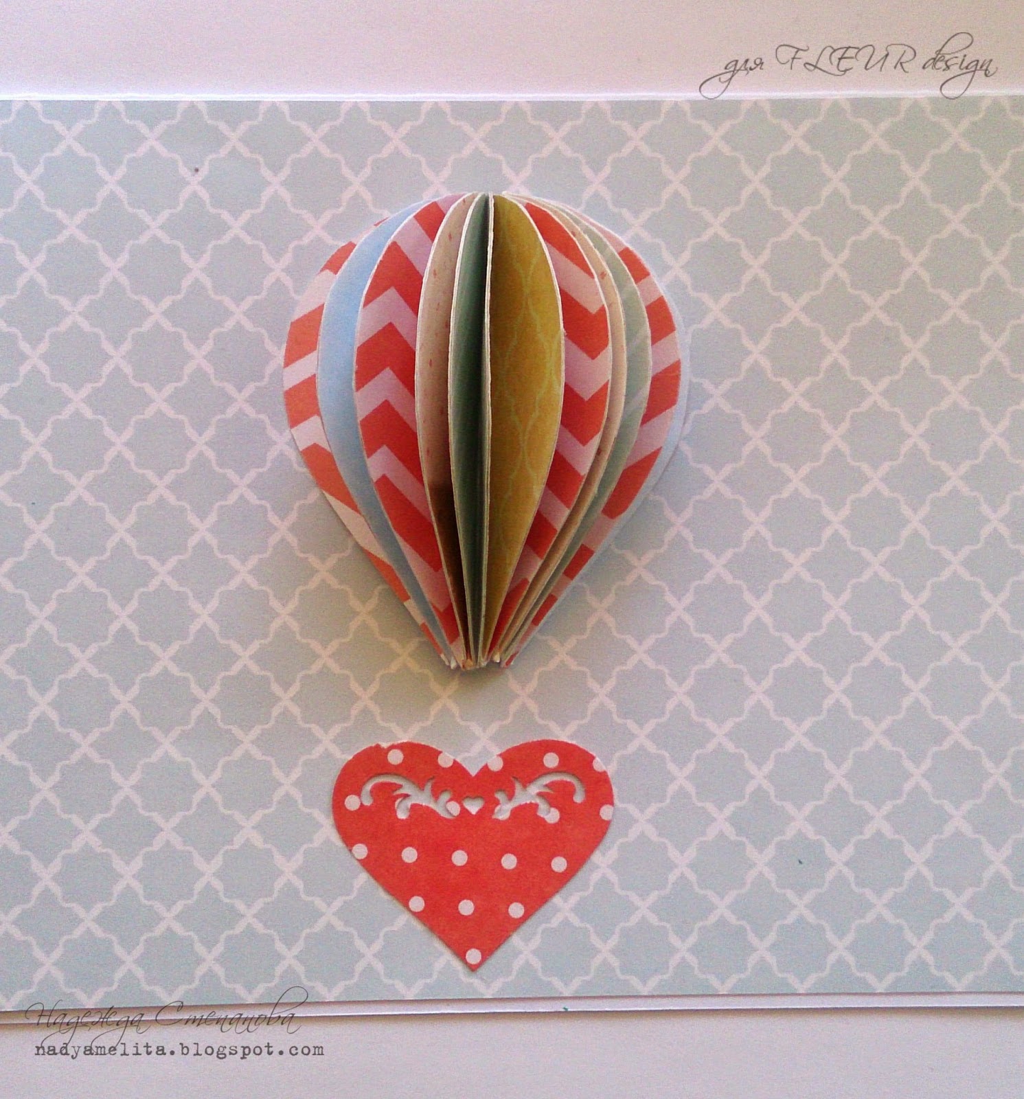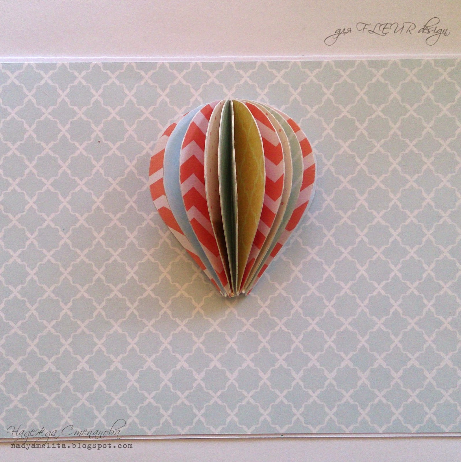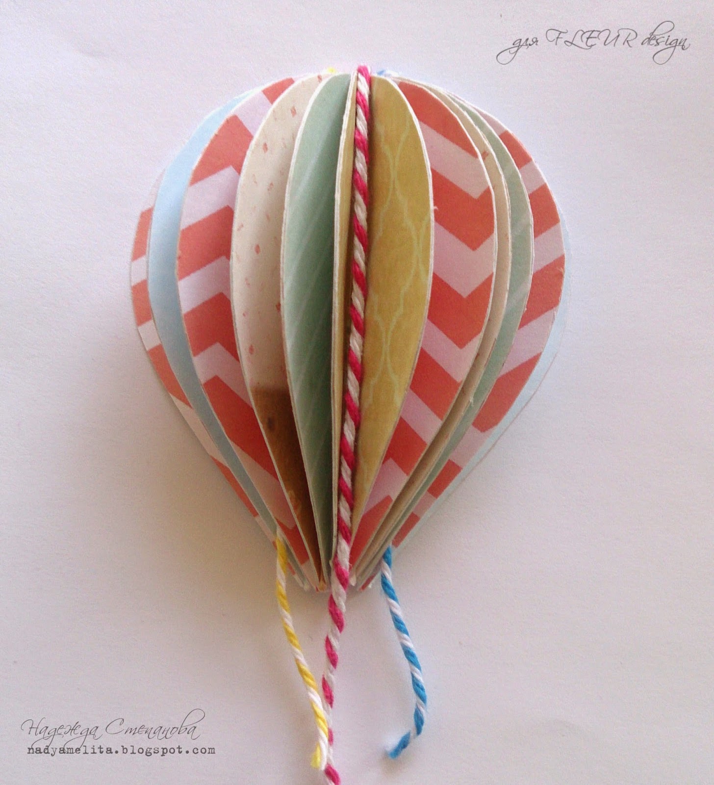 Для открытки я использовала обрезки из разных коллекций бумаги FLEUR design. Нарезала небольшие разноцветные заготовочки, из которых сделаю воздушный шар))).