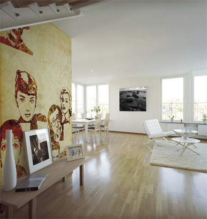 И, наконец, большая гостиная вдохновлен несколько Artofwall.com.pl. Я даю им визуализации, как лучше всего видно в них, как будет модель, представленная в помещении.