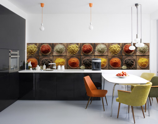 И, наконец, множество идей для фото обои на кухне. Великий проверить между верхней и нижней полки. Я и сам я собираюсь в ближайшее время внести эти изменения в своей кухне. Визуализация также Artofwall.com.pl .