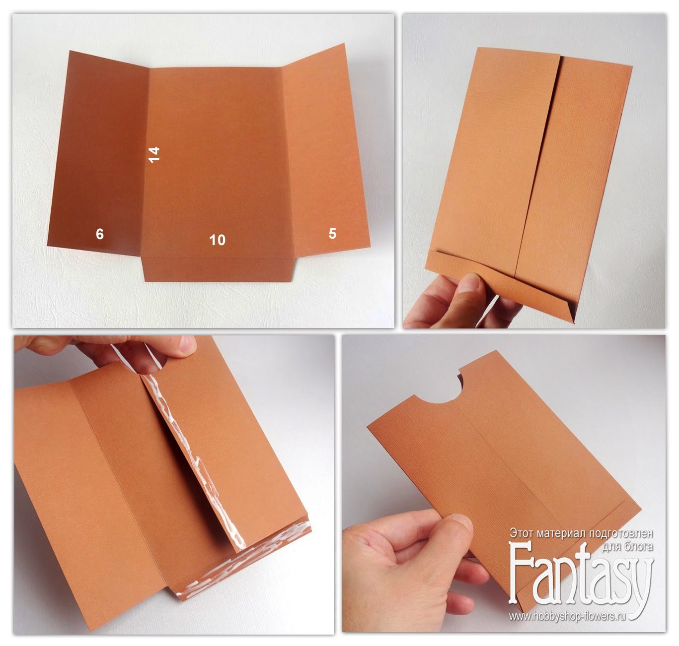 кардстока. Для одного кармашка берем лист размером 15 на 21 и размечаем и склеиваем вот таким образом (см.фото):