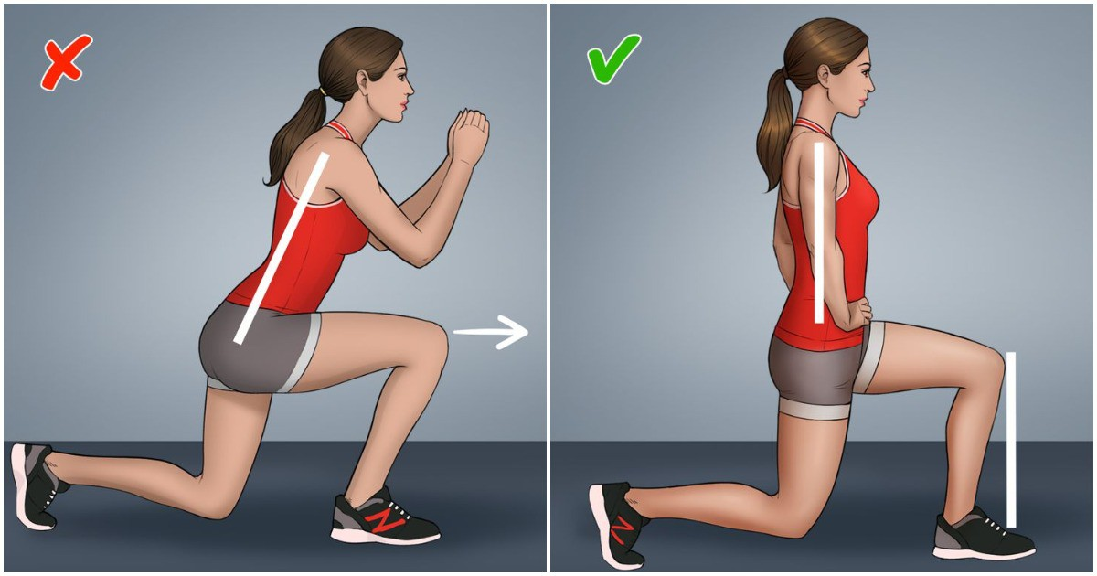 б) А если колени болят при спуске с лестниц, то подойдут выпады на колено. Исходное положение: стоим, сделав шаг ногой вперед. Затем сгибаем колено другой ноги на сколько возможно низко, но не ставим колено на пол. Получается такая фиксированная стойка. Напрягаются колени, бедра, таз. Продержаться 1 минуту. Повторить с другой стороны.