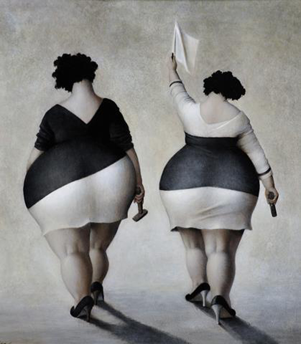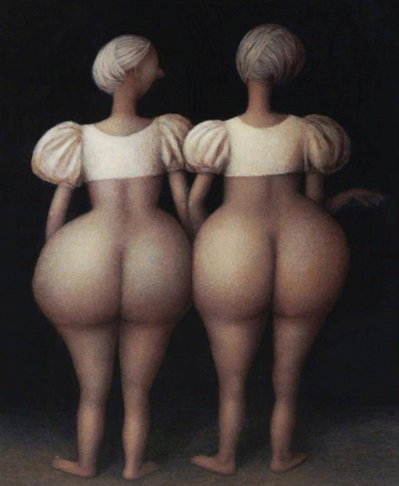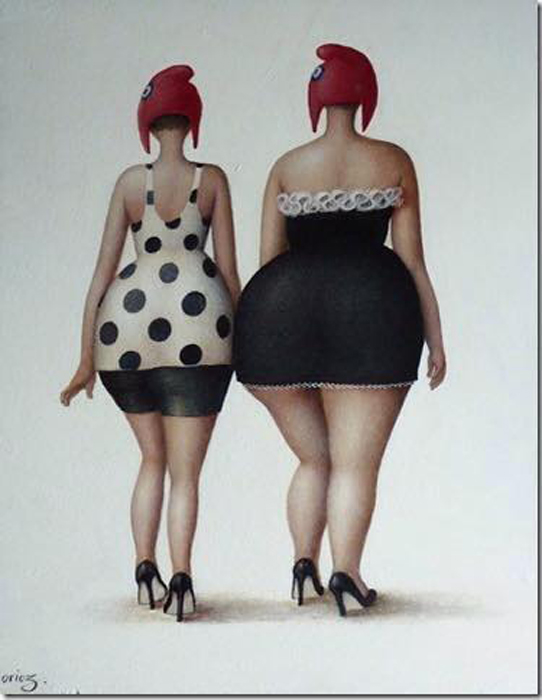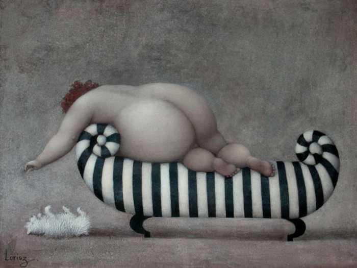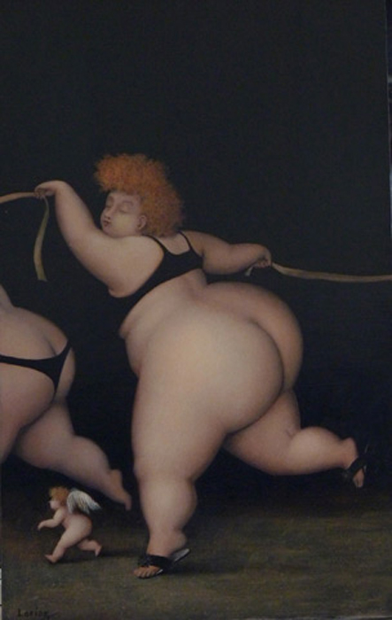 Жанне Лориоз. Главным героем ее прекрасных юмористических картин, безусловно, является женская пятая точка. Именно ей посвящено большинство работ художницы, и именно на нее ставится акцент в сюжетных работах Жанне. Впрочем, никакой пошлости - француженке удается добиться комического эффекта при изображении своих великолепных дам, и даже вызвать у зрителя определенную долю умиления.