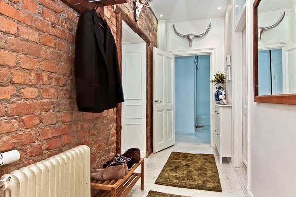 Ну здесь тоже вы не узнаете чего-то принципиально нового. Для маленькой прихожей идеальным вариантом будет светлая цветовая гамма, которая добавит легкости и зрительно увеличит размеры комнаты. Белый цвет отлично подойдет для данных целей, однако он слишком быстро пачкается (особенно при наличии в доме маленьких детей и животных), так что можно остановиться на других цветах с большим содержанием белого. Это может быть голубой, светло-фиолетовый, кофе с молоком, салатовый, бежевый. Еще такой момент, если ваша прихожая узкая и длинная - избегайте продольный полос, так как они еще больше вытягивают и сужают пространство. В данном случае пол и обои светлых оттенков визуально расширят комнату.