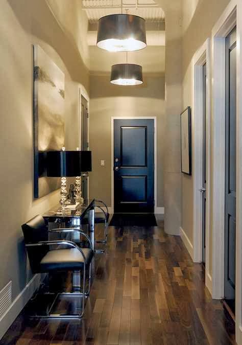 Правильно подобранное освещение играет важную роль в интерьере прихожей. Как правило, одного источника света не достаточно. Подумайте о подсветке зеркал, небольших светильниках или бра, которые будут прекрасно смотреться в длинном коридоре.