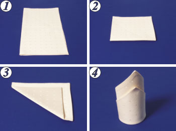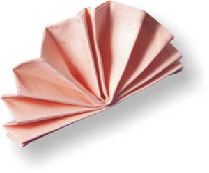 3. Возьмите салфетку в руку так, чтобы открытые концы складок смотрели вверх.