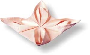 7. Придерживая рукой отогнутые углы, выдергиваем по очереди края салфетки «паруса».