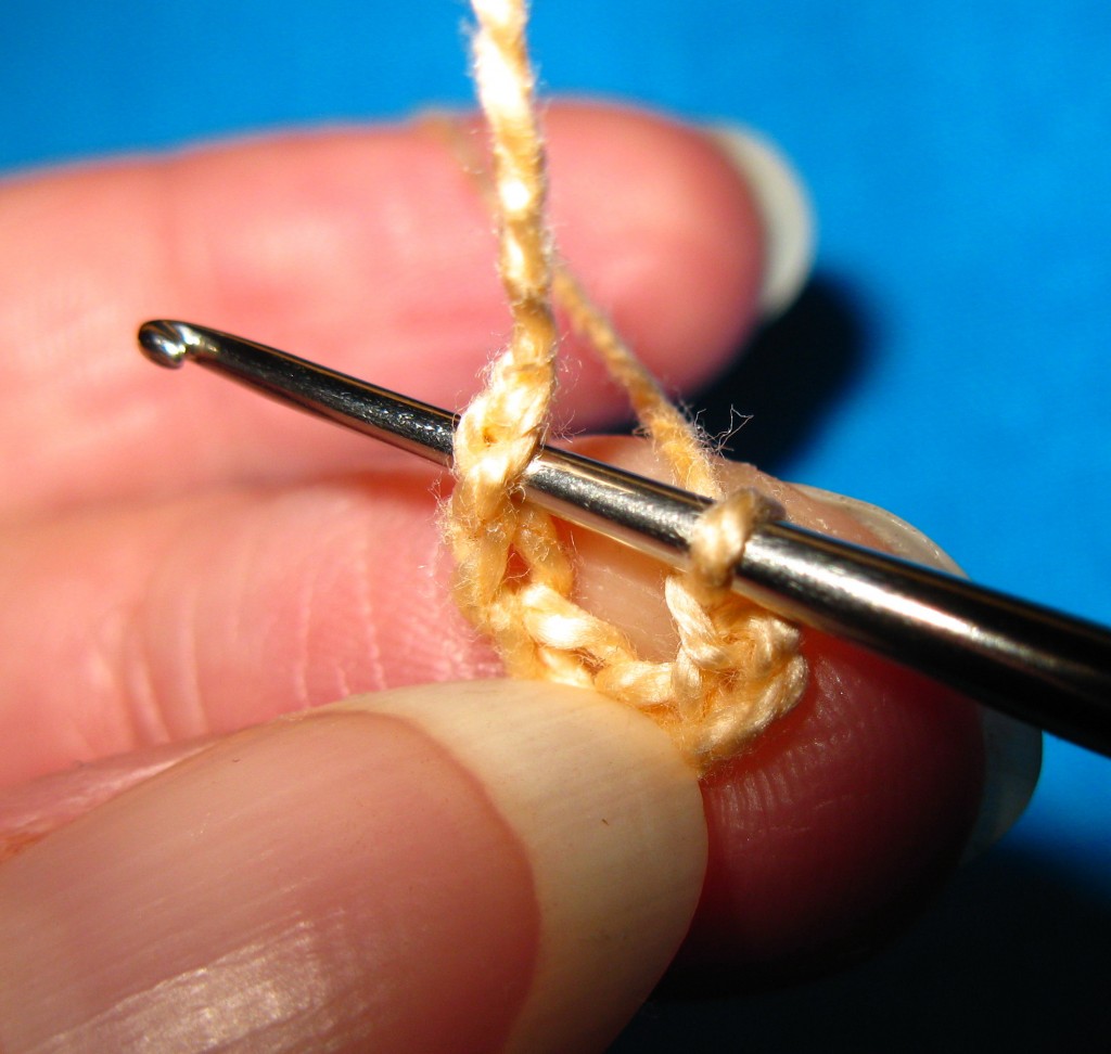 1. вставляете крючок в 1-ю воздушную петлю связанной цепочки