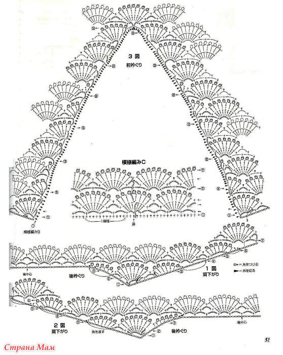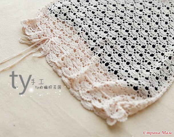 Обратите внимание что обвязка на треугольном вырезе идет внахлест.