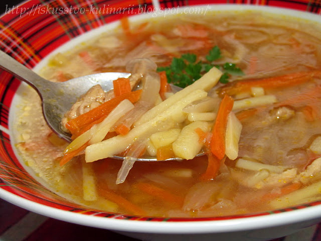 Хочу предложить вам очень интересный, и в то же время простой рецептик картофельного супчика! Вся фишка в способе нарезки овощей, что очень даже влияет на вкус. Сам супчик получается очень вкусным и легким. Количество продуктов и специй можно регулировать по вкусу. Нам такой вариант супа очень понравился! Надеюсь вы тоже его оцените. Угощайтесь!!!