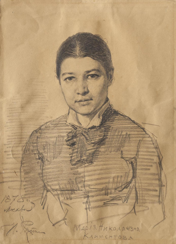 «Она была молода, почти так же, как Маруся в те короткие месяцы, — описывает Климентову биограф Поленова Марк Копшицер, — Но была она совсем другой: несколько скуластое лицо, чуть приподнятые уголки глаз, черные волосы. Что-то в ней восточное: японское, что ли. Она мило щурилась, когда улыбалась или смеялась».
