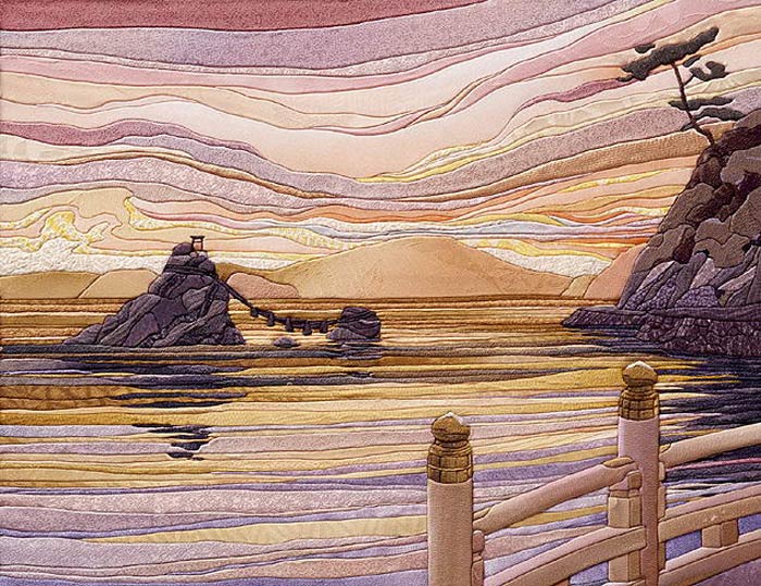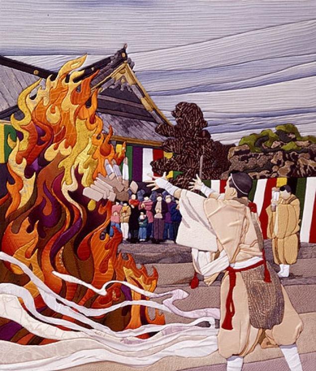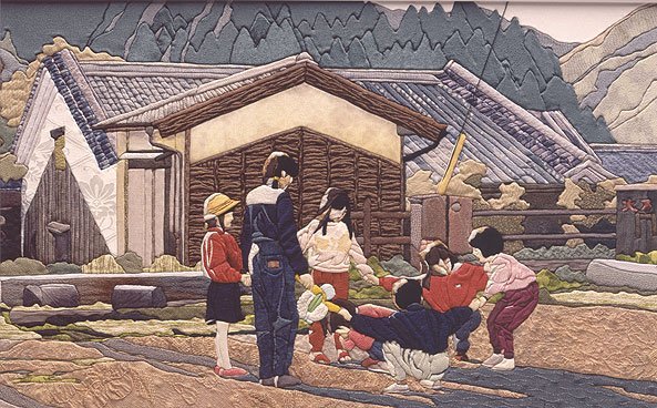 Кинусайга - разновидность любительского искусства, создание художественных изделий (подобия мозаики) из разноцветных кусочков ткани. Кимоно - традиционная японская одежда, с середины 19 века считающаяся в Японии "национальным костюмом". Японцы надевают кимоно до сих пор. Кимоно шьется из натурального шелка и, конечно, стоит очень долго. Старые кимоно никогда не выбрасывали, а использовали для создания других, более мелких вещей. Один из способов использовать шелковую ткань кимоно - создавать картины Кинусайга.