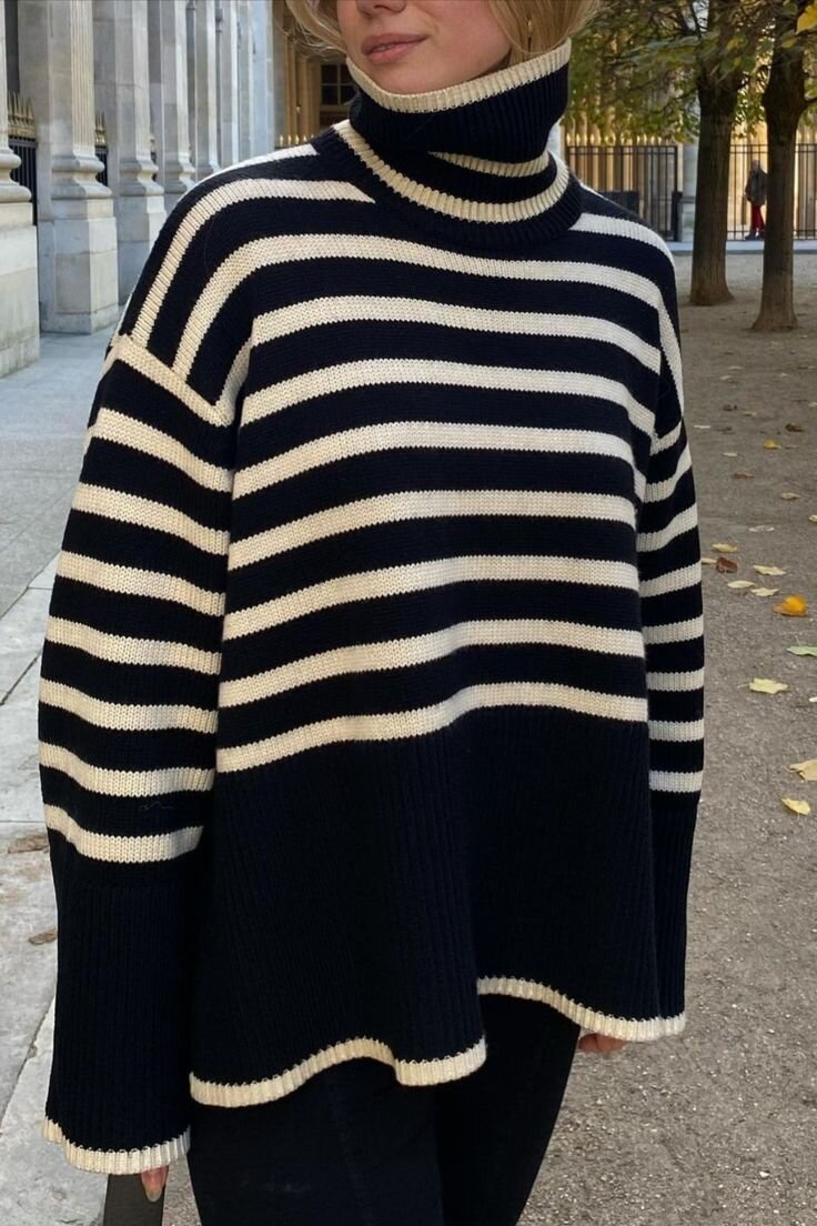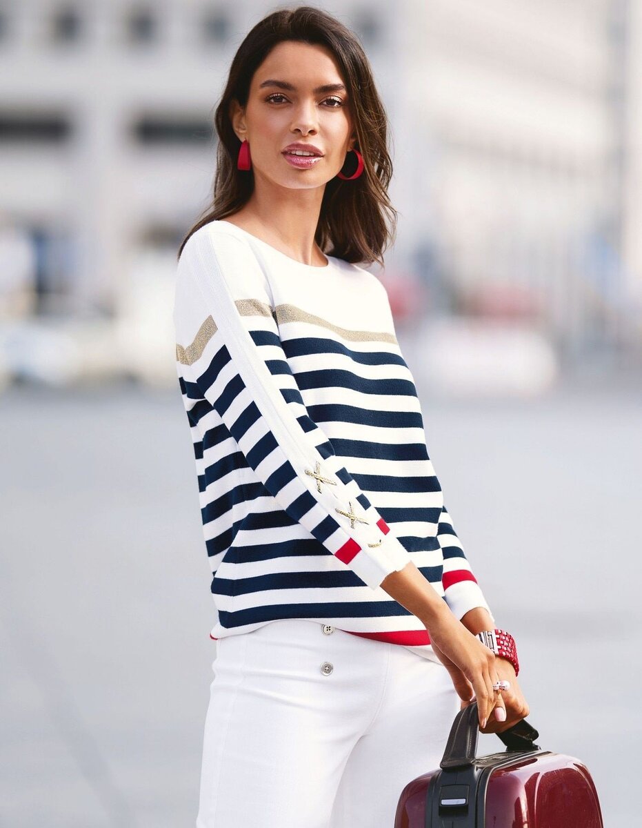 Бытует мнение, что горизонтальные полоски полнят, но если подойти к этому вопросу креативно, то результат можно получить противоположный.