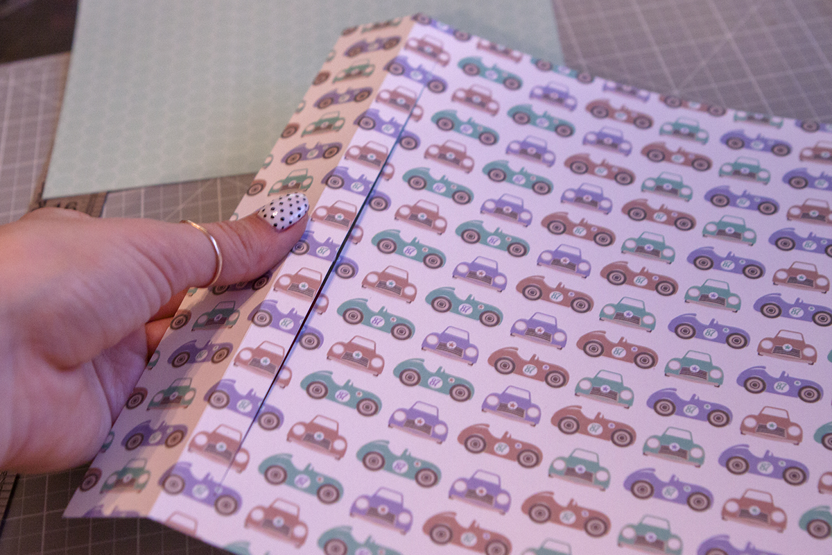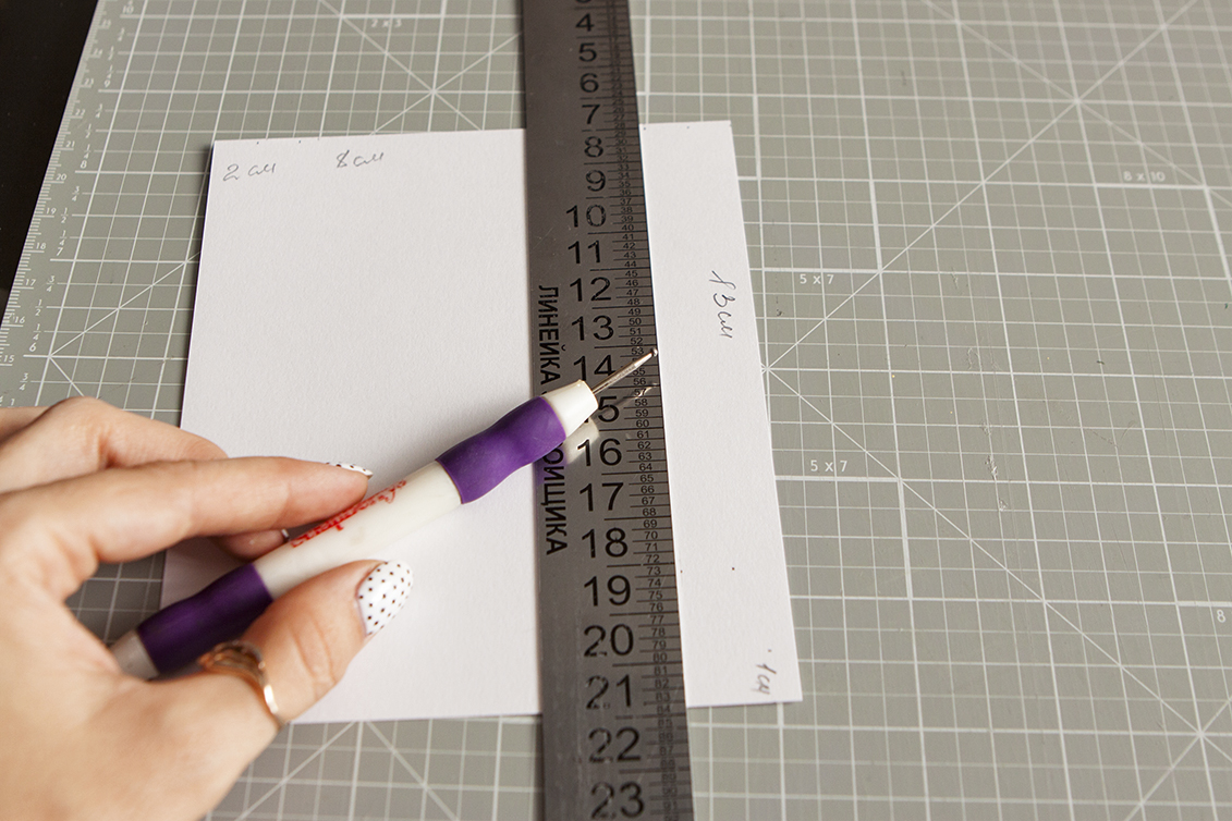 2. По ширине оставляю 1 см для линии сгиба. Бигую.