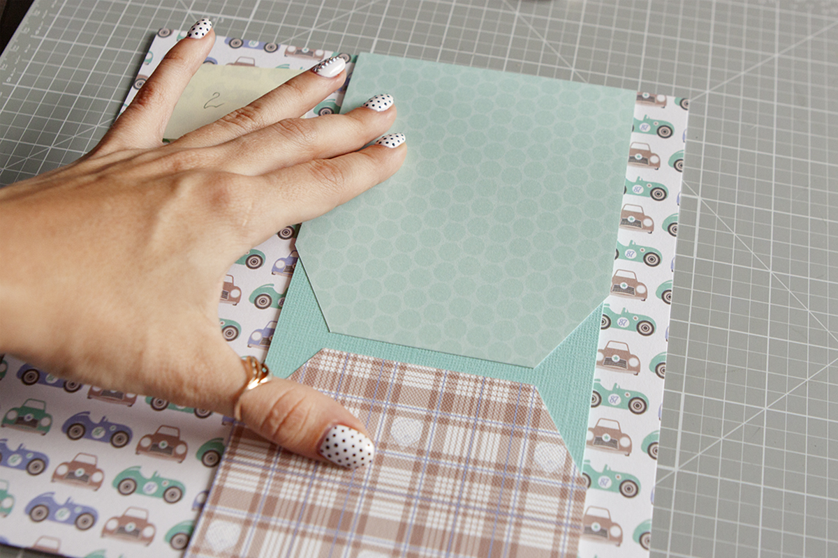 5. Примеряю кармашки с кармашками к основному листу.