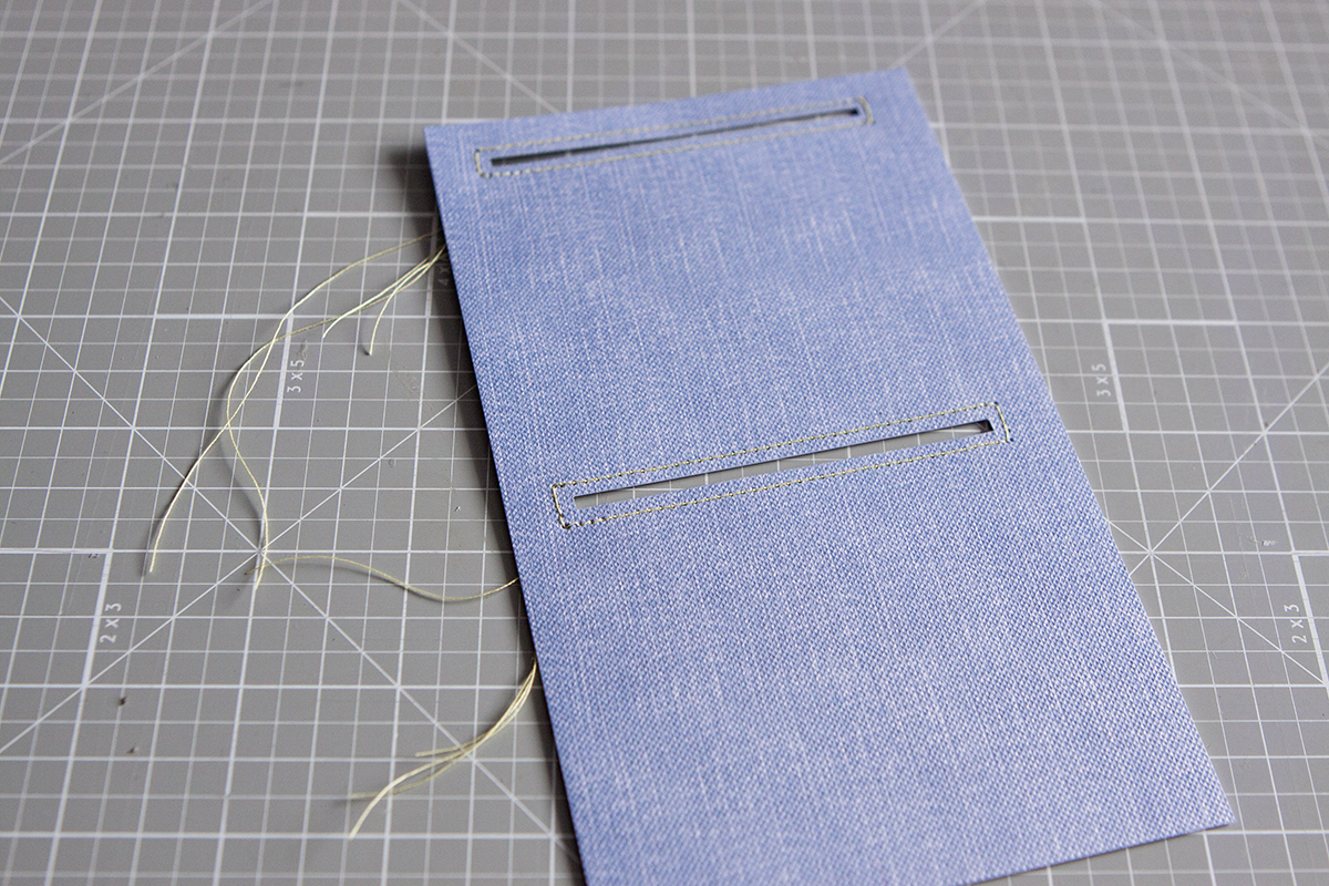 12. Делаю прорезь соответствующую нашему кармашку. Нижний загиб прячу. Клею.
