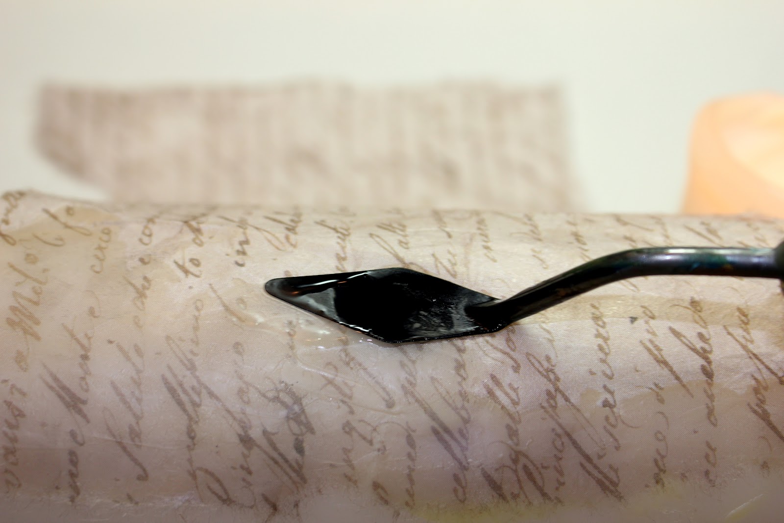 Надеюсь что вы внимательно посмотрели фото и заметили оЧ! главный момент: не важно мастихином или ложкой вы будете пользоваться, важно!!! нагревать с одной стороны, а приклеивать другой стороной!!! Иначе все замараете .