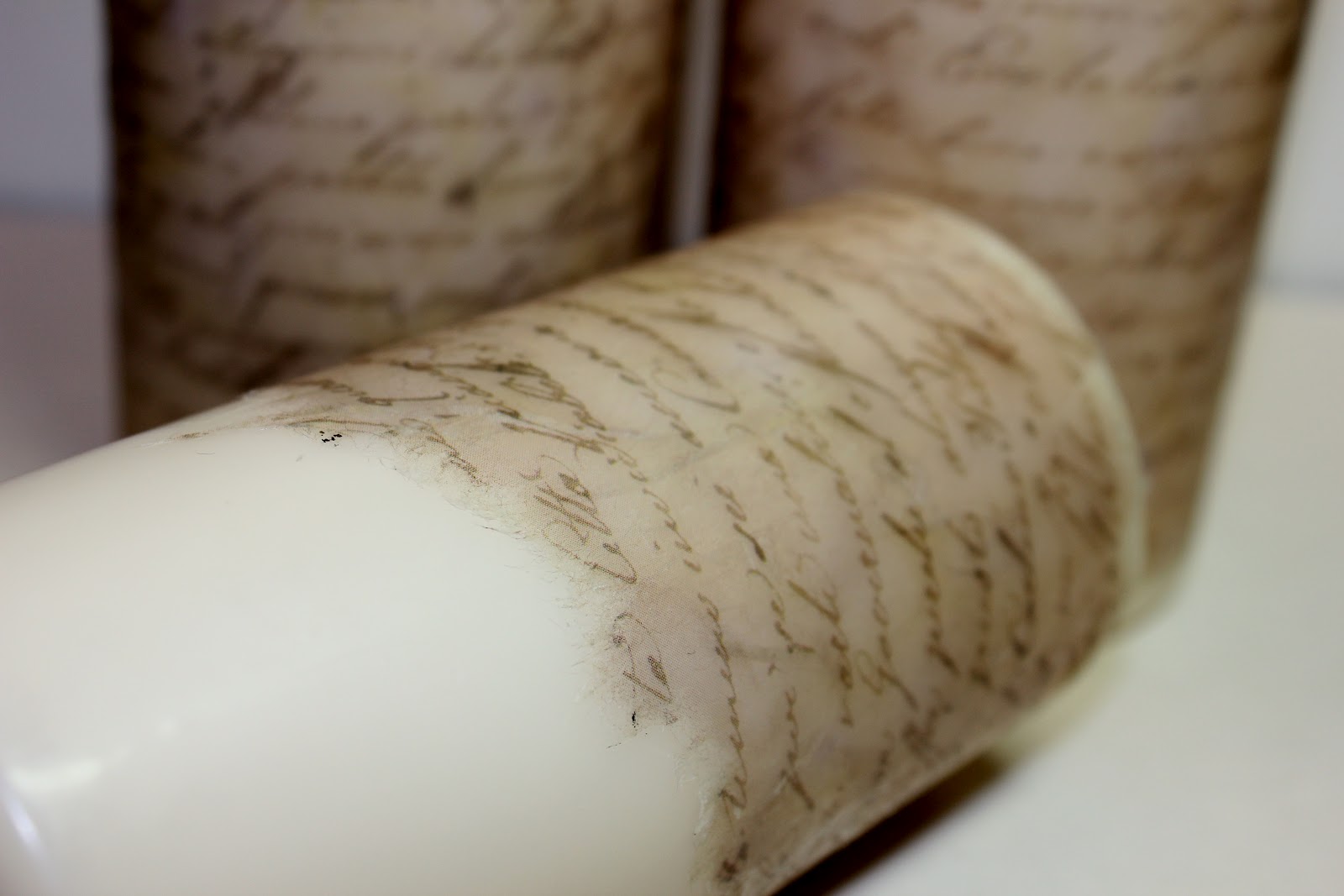 * Рисовая декупажная карта , с желаемым рисунком, например текст как у меня. Рисовая бумага во первых очень легка в применении вообще в декупаже, во вторых она легкая и прозрачная, хорошо пропускает воск, ну а в третьих формат листов обычно большой и нам хватит сделать несколько сочетаемых между собой свечей, что важно в интерьере помещения.
