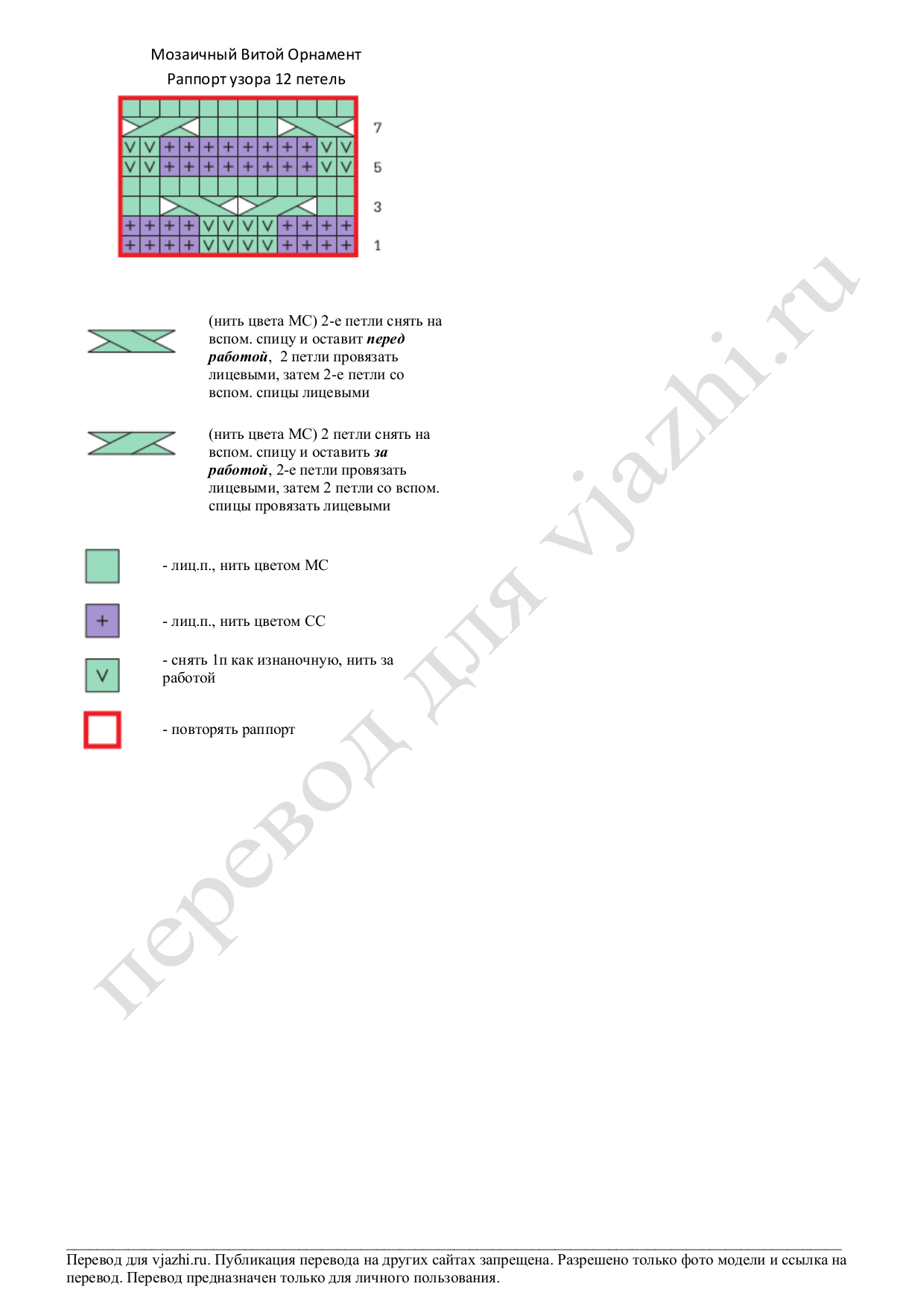 Перевод описания и схемы вязания снуда спицами с английского языка.