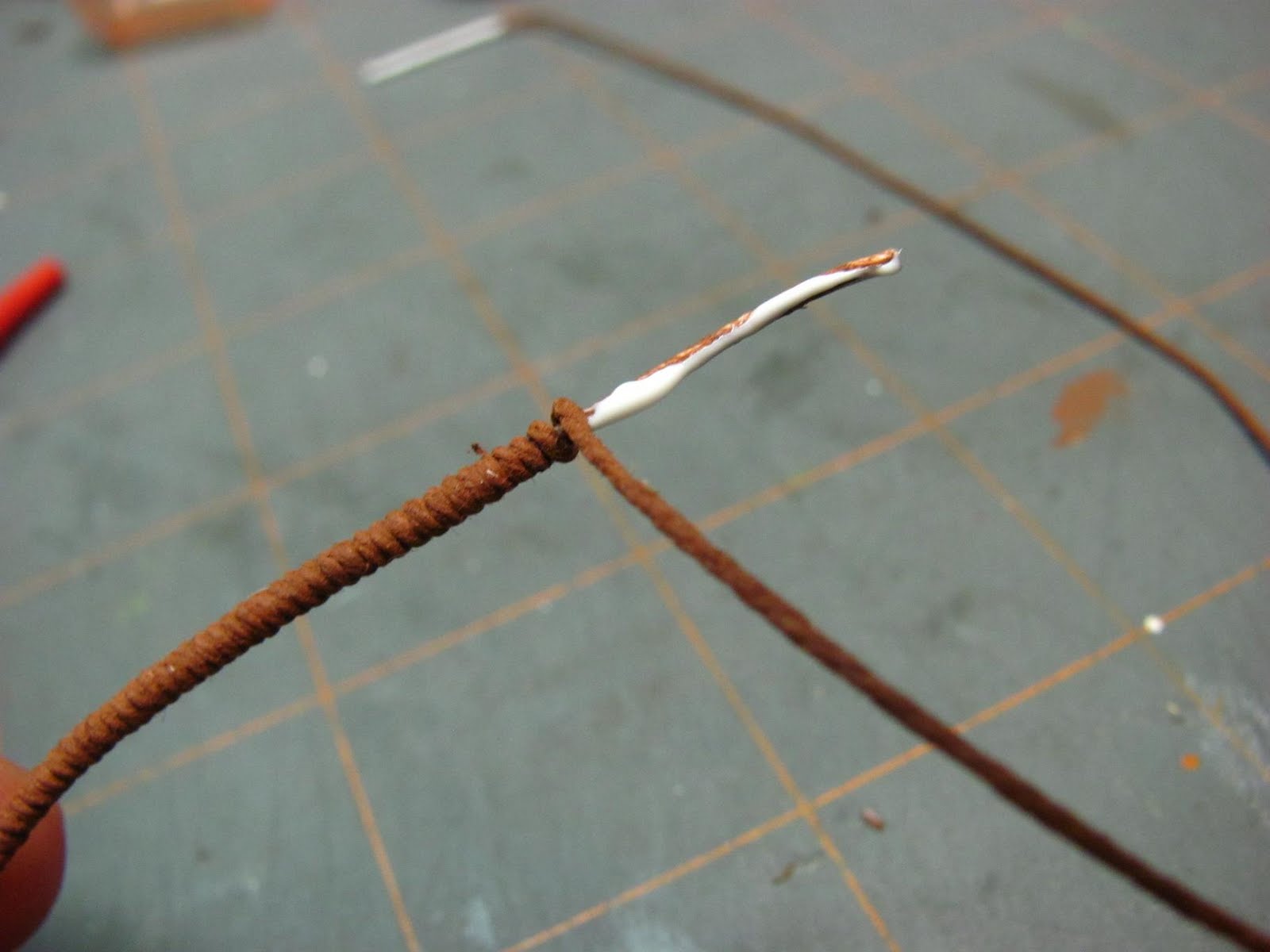 Таким образом, это то, что вам нужно сделать: пробить с "Т" контактный, высверлить отверстие, опустите конец провода в желтый клей для дерева, получить хорошую сумму на провода и положить провода в отверстие . Если вы используете тип раны нить покрыта провода я нашел, если бы я повернул проволоки в направлении потока была намотана это помогло. Это скручивание держали нить от раскручивания.