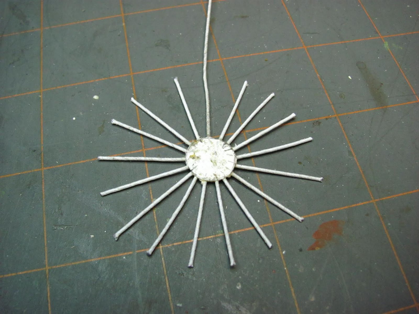 Круг вы видите, 7/16 "(6 мм) в диаметре. У меня 17 штук провода держаться в ней. Отрежьте провода в 1 дюйм (2,5 см) части, вырезать одну часть 2 1/2 "до 3" ( 63 мм для 77 мм), что ваша ручка.