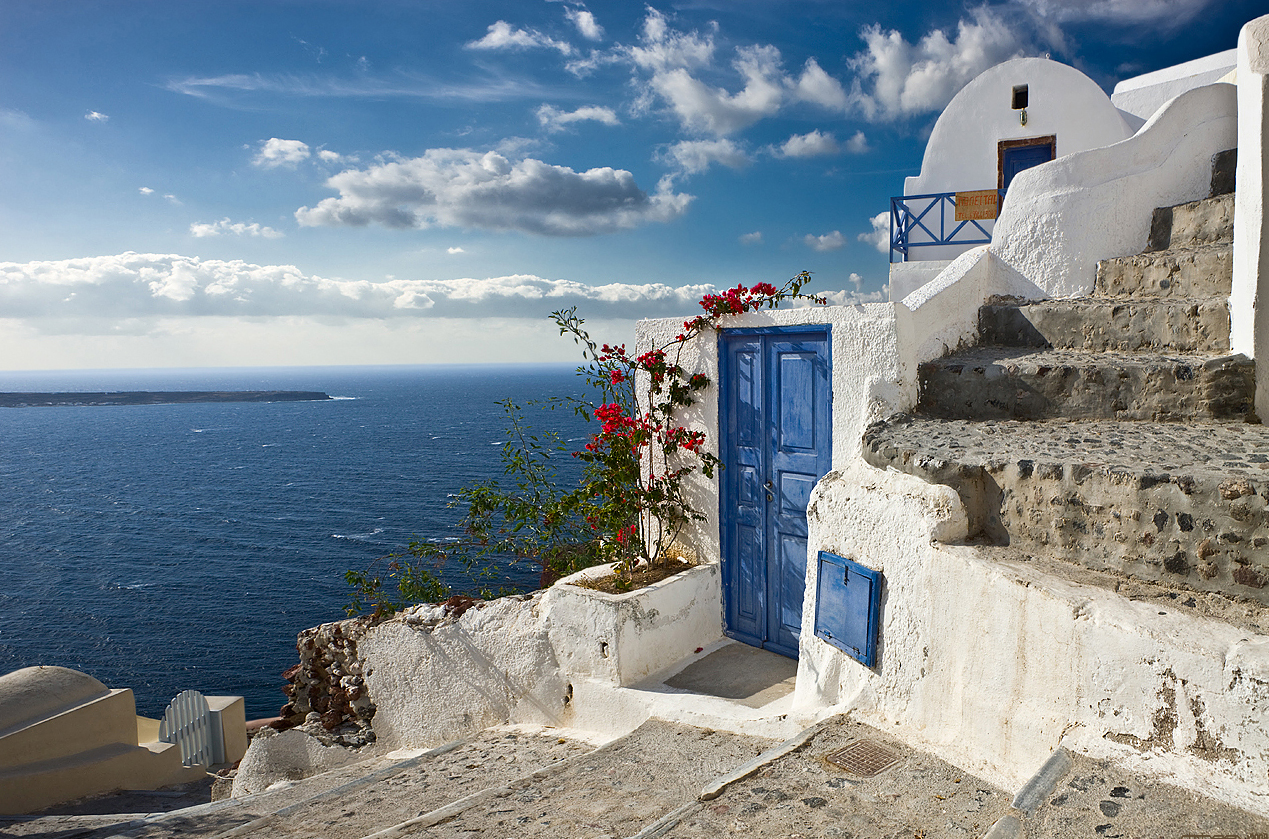 Санторини следующая наша остановка в путешествие по островам Греции. Санторини самый известный и самый загадочный греческий остров. Ослепительной белизны дома со сводчатыми потолками и голубые купола церквей – так выглядит этот остров.