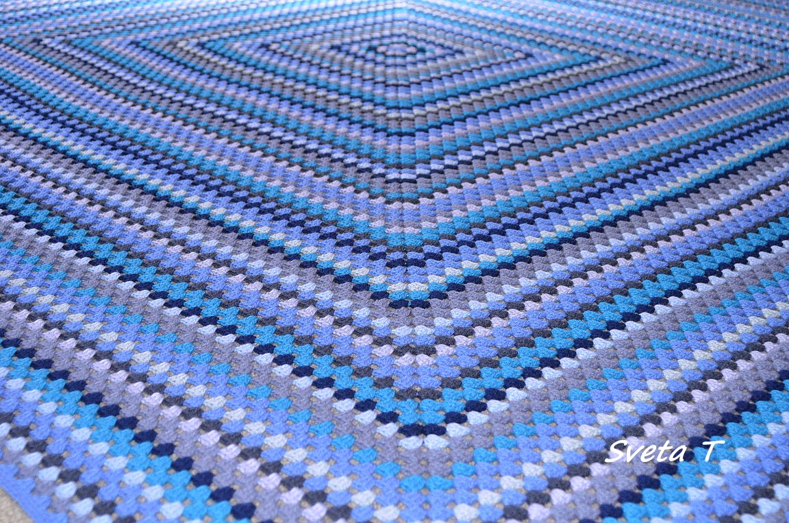 Для англо-неговорящих повторюсь: покрывало размером 2,3 м х 2,3 м связано крючком №4,5 в основном из акрила Moda Vera Marvel Plain 8ply. Общий метраж израсходованной пряжи 5780 метров, вес примерно 2,2 кг.