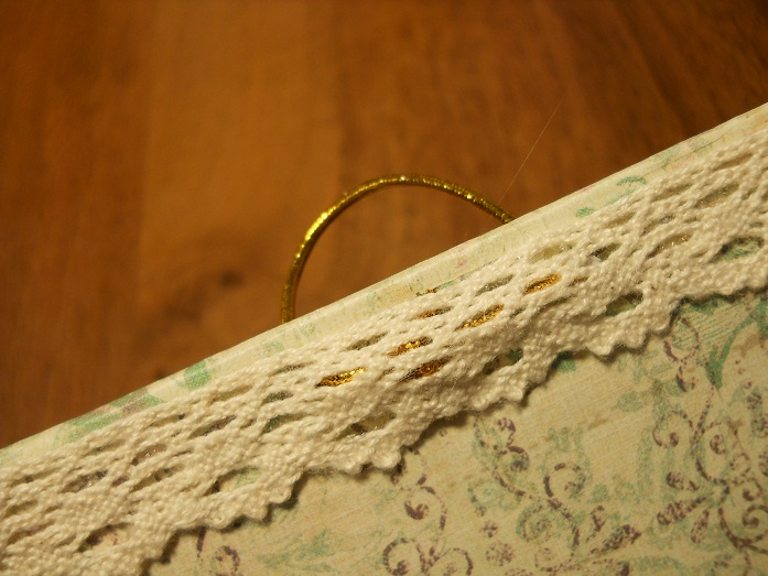 [показать]А дальше все просто. Укладываем сеточкой вниз всю нашу конструкцию на лист тонкой скрапбумаги. Лучше тонкой - она поэлегантнее будет...