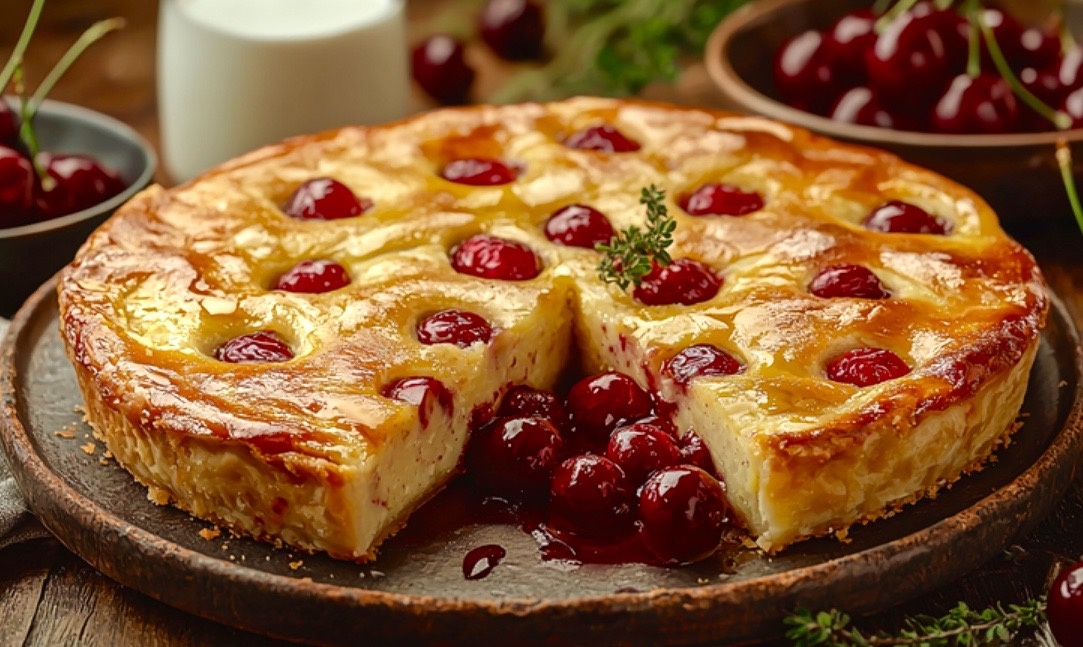 Поставьте пирог в разогретую духовку и выпекайте 35-40 минут. Пирог должен полностью пропечься и хорошо зарумяниться.