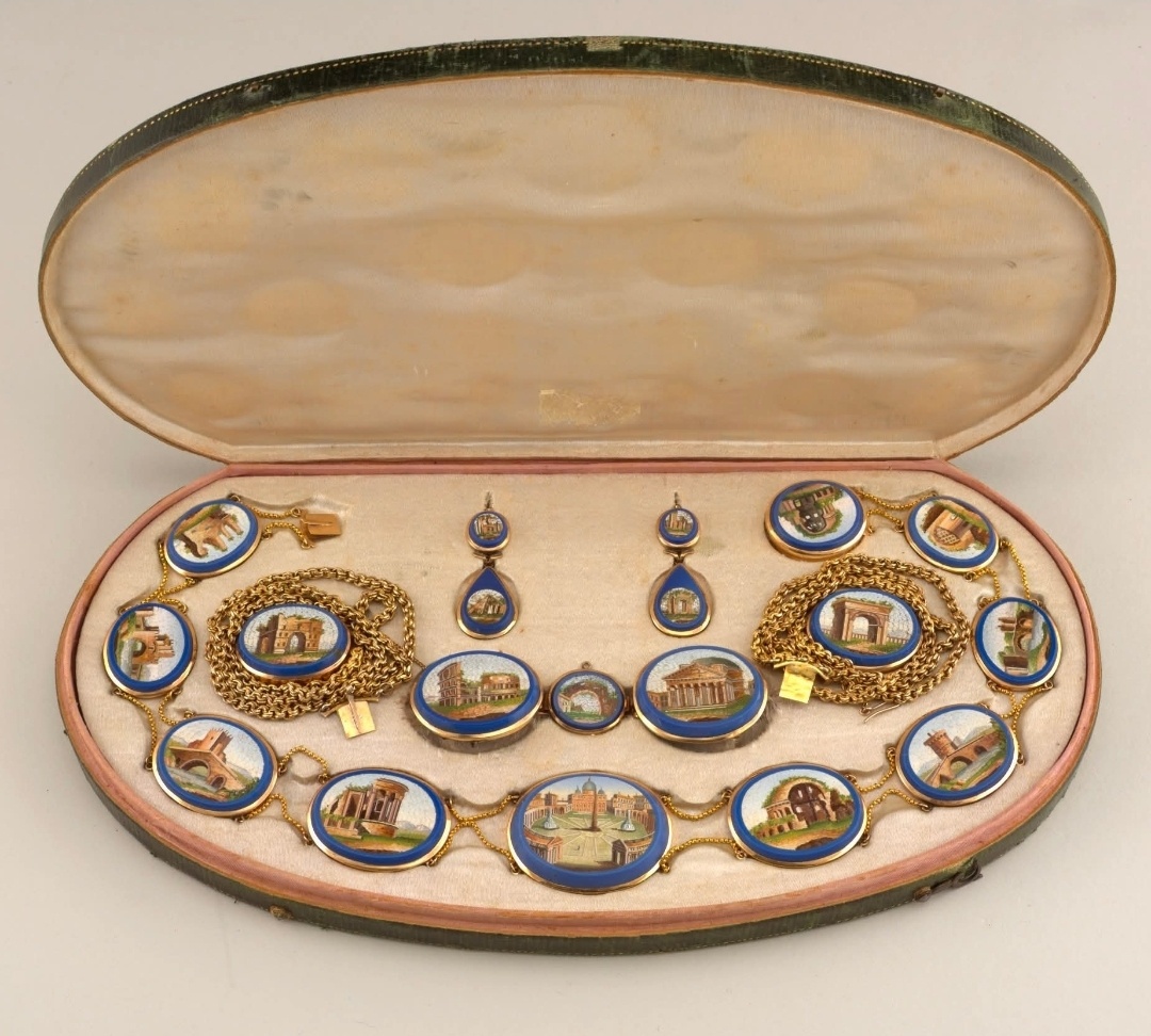 Джакомо Раффаэлли (1753–1836) — один из первых, кто начал использовать микромозаику в ювелирных украшениях, вдохновляясь живописью старых мастеров.